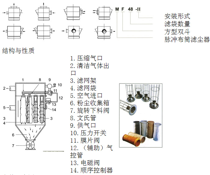 MF系列脈沖布筒濾塵器的詳細(xì)資料:積附在濾袋外壁的粉塵不斷增加。當(dāng)阻力在限定(一般為80-120毫米水柱)的范圍內(nèi),就要清除積附在濾袋外壁的粉塵,清灰是由控制儀定期順序觸發(fā)各控制閥,開啟脈沖閥,使氣包內(nèi)的壓縮空氣由噴吹管孔噴出(一次風(fēng))通過文氏管誘導(dǎo)數(shù)倍于一次風(fēng)的周圍空氣(二次風(fēng))進(jìn)入濾袋,使濾袋在一瞬間急劇膨脹并伴隨著氣流的反向作用.被抖落的粉塵落入灰門經(jīng)排灰閥排出機(jī)體。